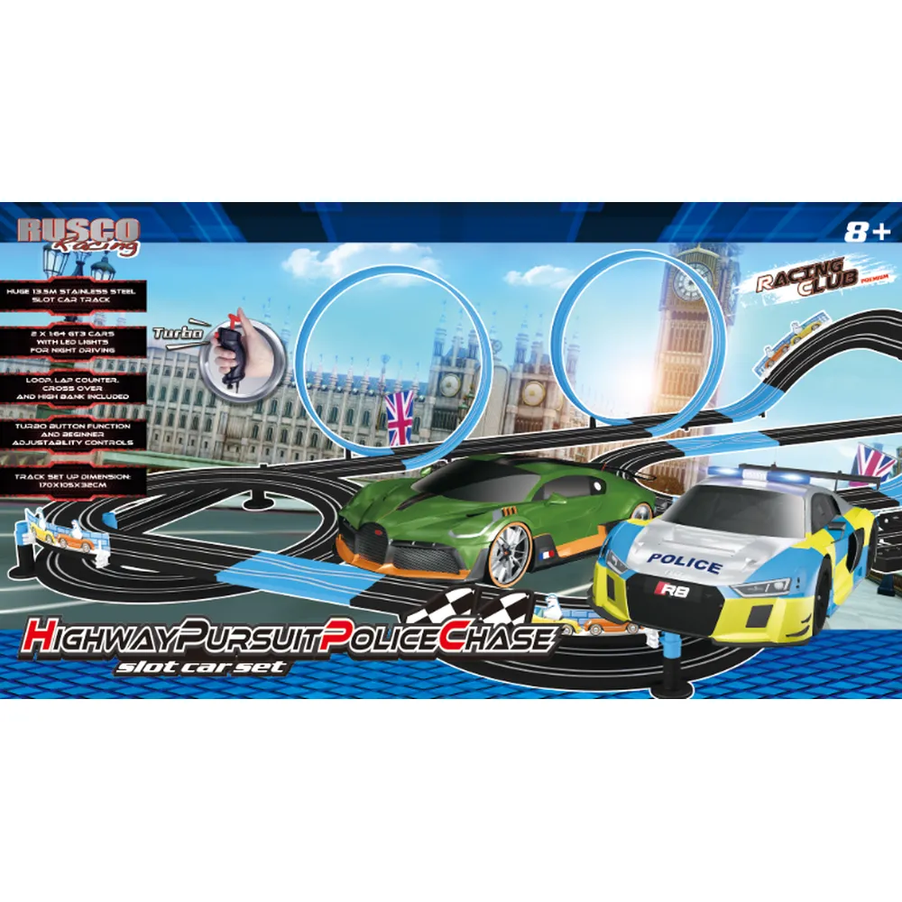 ![]() | RUS-193 | RUS-193 1:64 TH. POLICE CHASE DOUBLE LOOP SLOT CAR SET SLOT CAR SET - RTR POWER | Rusco | Login see prices | 2 | ![]() | ||
