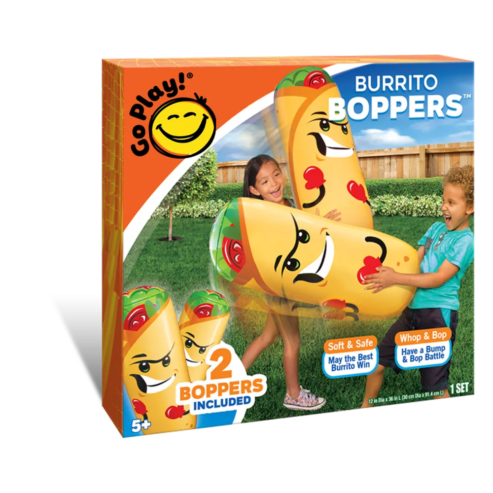Get ready for hours of fun with the Go Play! Burrito Boppers. This pack of 2 soft and safe inflatable bop toys is perfect for kids aged 5 and up.
