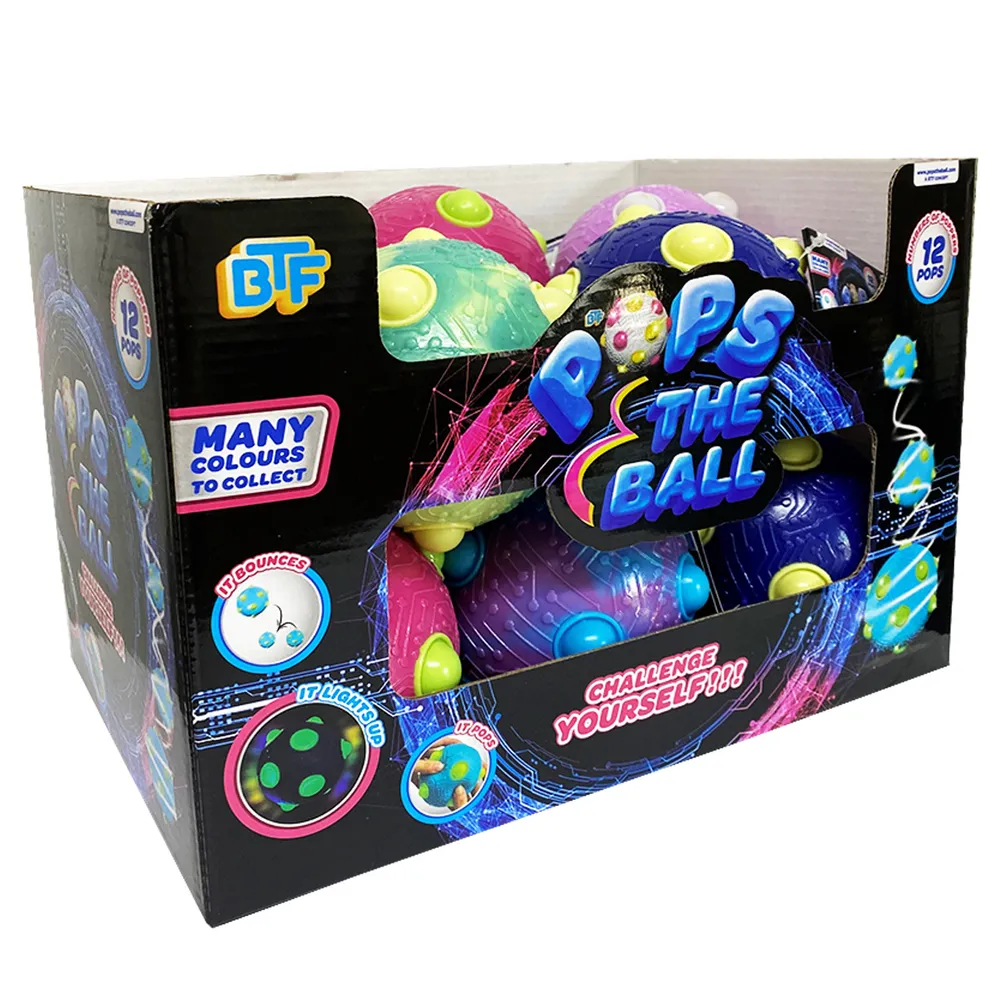 A 10cm high bouncing soft ball with 12 poppers and a light up feature makes “POPS THE BALL” the most unique and fun ball you will play with!