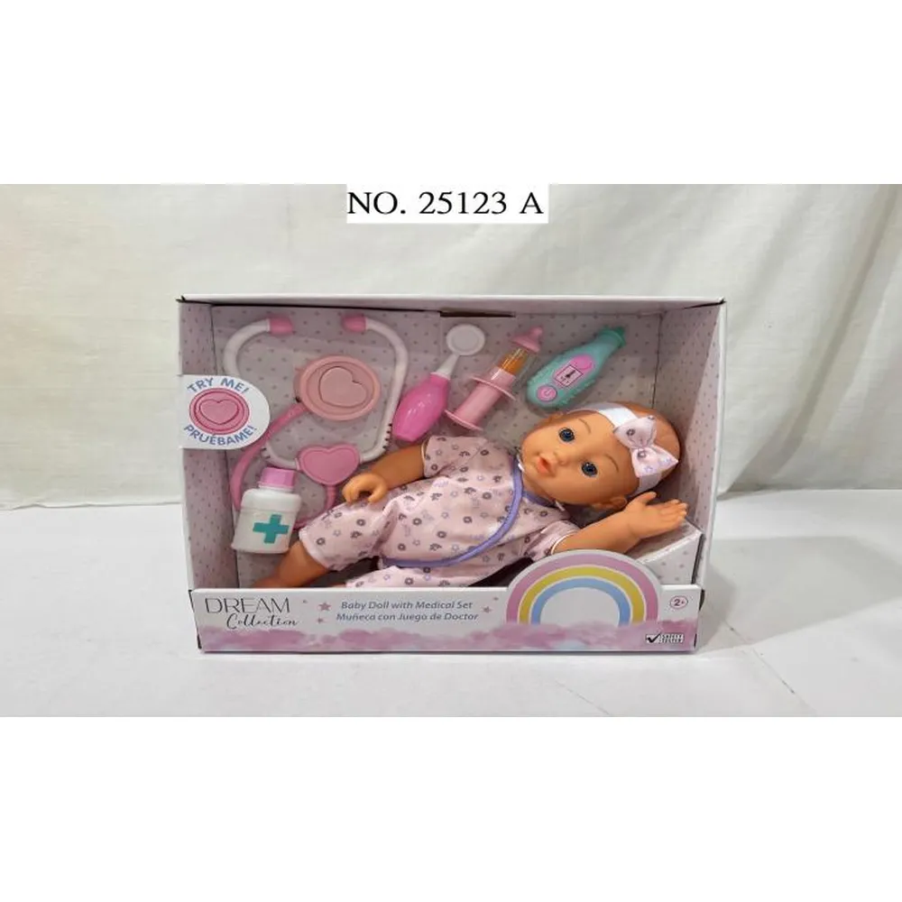 RUS-25123 GIGO 12″ BABY DOLL MEDIACL PLAY SET