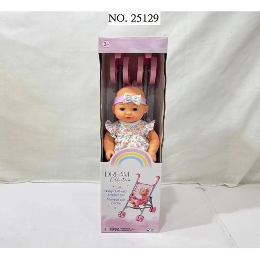 RUS-25129 GIGO 12″ BABY DOLL WITH METAL STROLLER