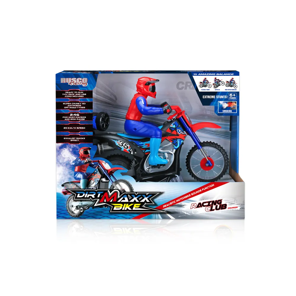 RUS-162xx RUSCO 1:10 TH. 3 COLS. SMOKING MOTORBIKE WITH SOUNDS – USB – RTR