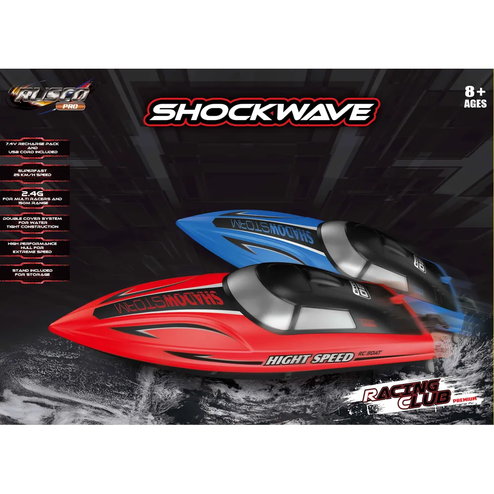RUS-18 RUSCO PRO 2 COLS. & 2.4 GIG PRO SHOCK WAVE – 25 KMH BOAT – USB – RTR – SALT WATER